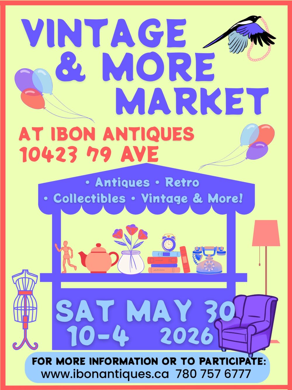 The Vintage and More Outdoor Market at Ibon Antiques returns for another season!  Rain or shine, browse multiple vendors and find items like: Estate items, Antiques, Garage sale bargains, Collectibles,...
